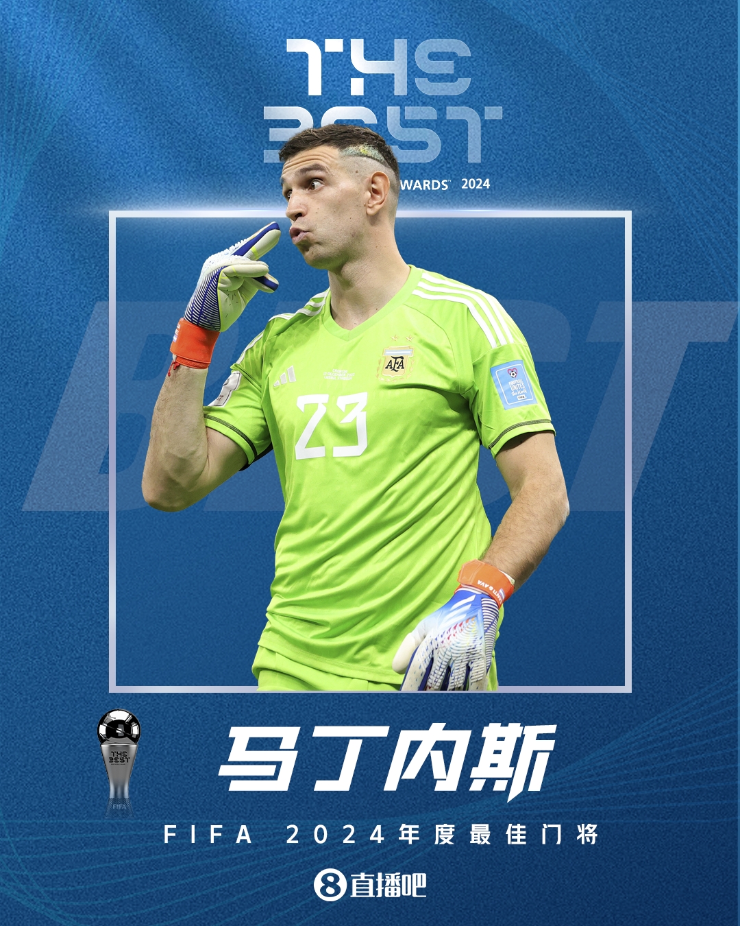 12月18日訊 FIFA官方公布了2024年度最佳門將得主,馬丁內(nèi)斯三年兩獲獎。