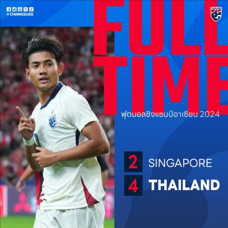12月18日訊 東南亞足球錦標賽A組第四輪,泰國4-2擊敗新加坡領(lǐng)跑該小組。