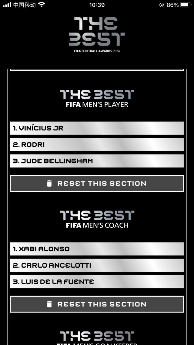 參加國際足聯(lián)男足獎項投票以來,我的選擇經(jīng)常與最終結(jié)果相吻合。但今年非常遺憾,只有最佳球員的投票結(jié)果完全一致。