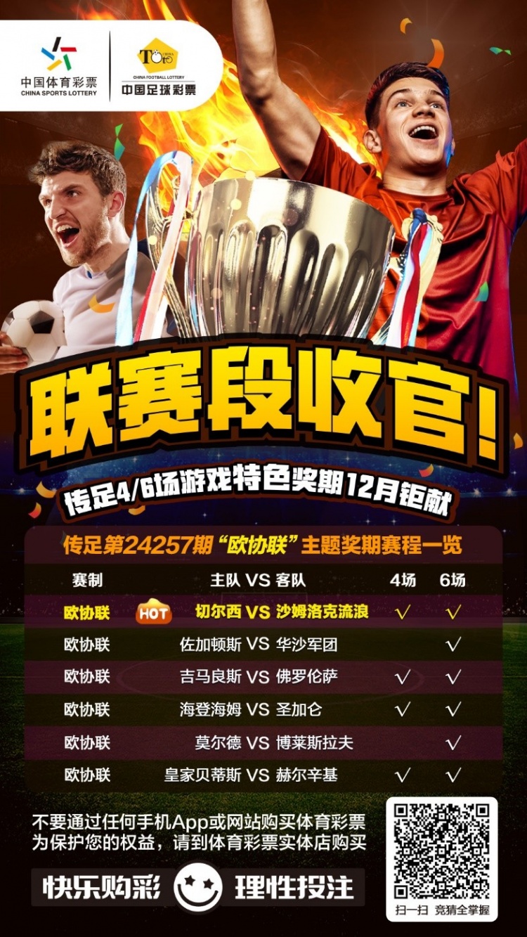 傳足4/6場(chǎng)游戲特色獎(jiǎng)期第24257期競(jìng)猜場(chǎng)次聚焦歐洲足聯(lián)協(xié)會(huì)聯(lián)賽的聯(lián)賽階段第六輪賽事,具體場(chǎng)次為切爾西VS沙姆洛克流浪、佐加頓斯VS華沙軍團(tuán)、吉馬良斯VS佛羅倫薩、海登海姆VS圣加倫、莫爾德VS博萊斯拉夫和皇家貝蒂斯VS赫爾辛基。