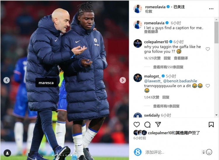 12月19日訊 切爾西中場拉維亞更新ins動態(tài),遭到隊友帕爾默的調(diào)侃。