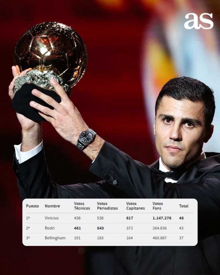 12月19日訊 《阿斯報(bào)》表示道:如果使用與《法國(guó)足球》相同的投票標(biāo)準(zhǔn),那么羅德里將會(huì)獲得今年的FIFA最佳球員。
