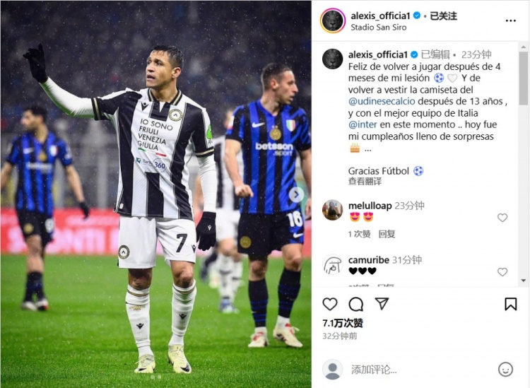 桑切斯:很高興在受傷4個(gè)月后再次上場(chǎng)比賽,并在13年后再次穿上烏迪內(nèi)斯的球衣,與目前意大利最好的球隊(duì)國(guó)際米蘭比賽。今天是我的生日,充滿(mǎn)驚喜