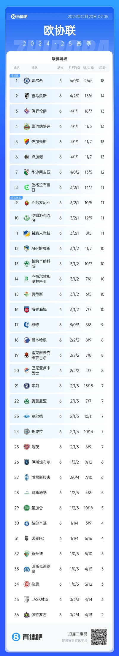 12月20日訊 歐協(xié)聯(lián)聯(lián)賽階段第6輪,切爾西主場(chǎng)5-1大勝沙姆洛克流浪,歐協(xié)聯(lián)聯(lián)賽階段6場(chǎng)比賽全勝。