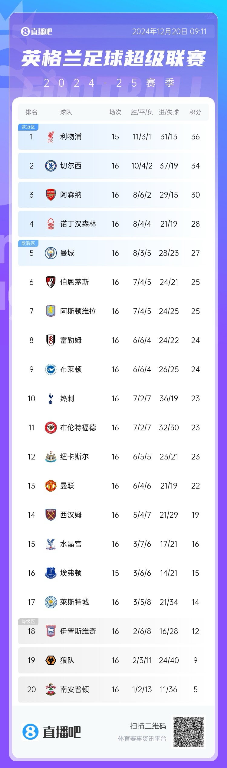 目前,曼聯(lián)已經(jīng)踢了16輪英超,6勝4平6負(fù)積22分,暫居英超第13。
