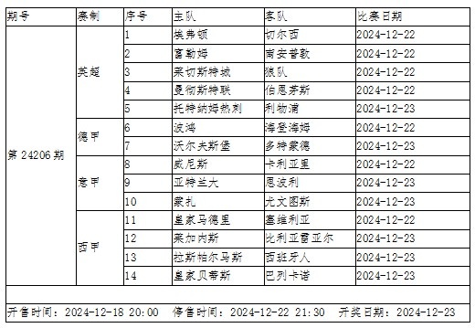 傳足勝負(fù)彩第24206期競(jìng)猜賽事中不乏豪門(mén)出戰(zhàn):英超方面,近況頗佳的切爾西客場(chǎng)出征埃弗頓,曼聯(lián)主場(chǎng)迎戰(zhàn)伯恩茅斯,熱刺則將與利物浦展開(kāi)強(qiáng)強(qiáng)對(duì)話;西甲,皇家馬德里主場(chǎng)對(duì)陣塞維利亞。