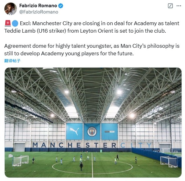 據(jù)悉,曼城即將完成簽約,來(lái)自萊頓東方的16歲天才球員泰迪-蘭博將會(huì)加盟。曼城的青訓(xùn)系統(tǒng)愿意為優(yōu)秀的球員提供機(jī)會(huì),因?yàn)樗麄兊睦砟钜廊皇菫榱司銟?lè)部的未來(lái)去培養(yǎng)年輕的球員。