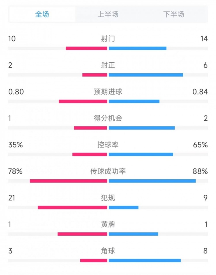 維羅納0-1米蘭全場(chǎng)數(shù)據(jù):
