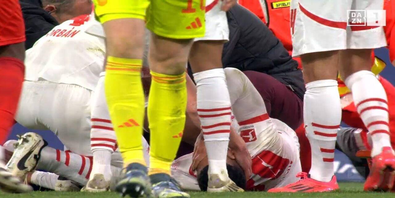 12月21日訊 德甲第15輪,拜仁vs萊比錫。比賽補(bǔ)時(shí)階段,亨里希斯無對抗倒地,看起來傷勢比較嚴(yán)重,比賽結(jié)束了也沒起來。