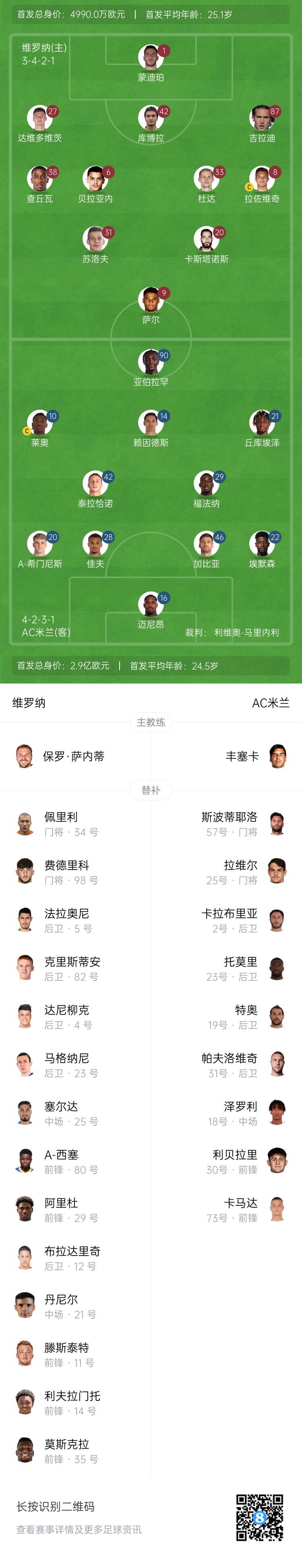 AC米蘭替補:25-拉維爾、57-斯波蒂耶洛、2-卡拉布里亞、18-凱文-澤羅利、19-特奧、23-托莫里、30-利貝拉里、31-帕夫洛維奇、73-卡馬達(dá)