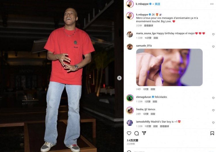 12月21日訊 皇馬前鋒姆巴佩在今日迎來26歲生日并收到了很多祝福,他也通過社媒表達(dá)了感謝。
