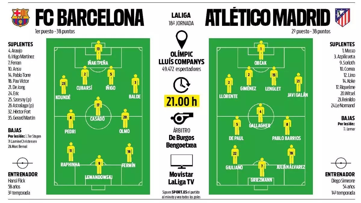 《每日體育報》預(yù)測巴薩vs馬競首發(fā)