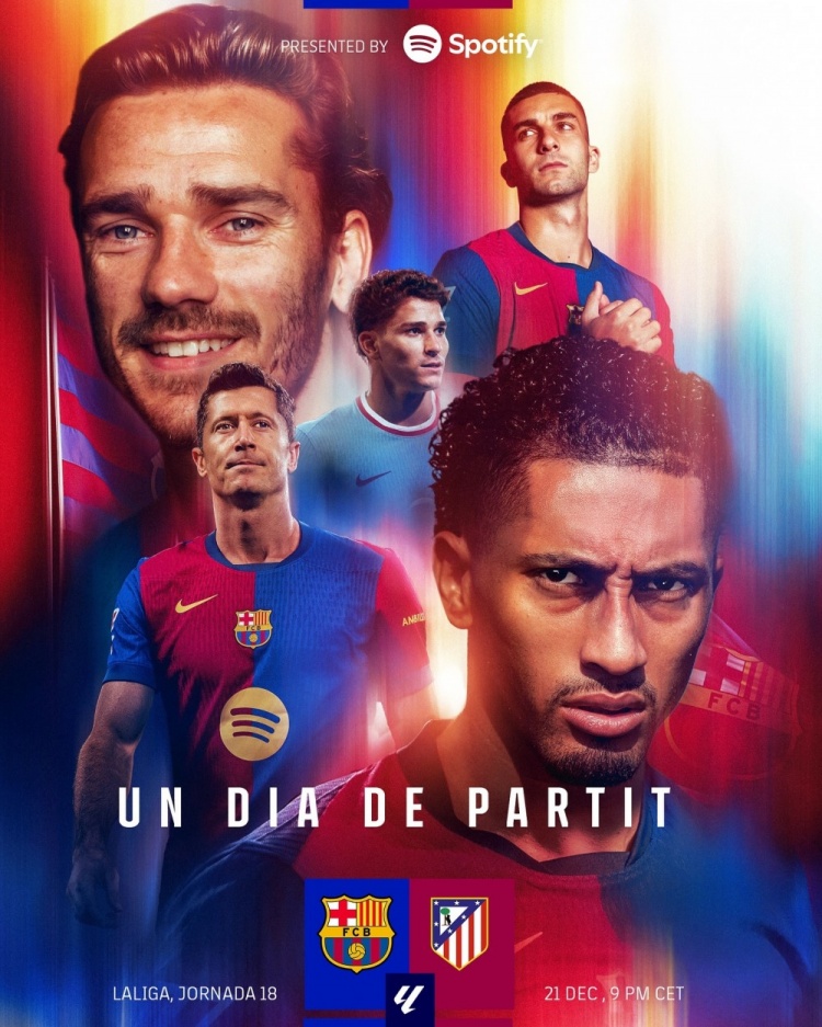 巴薩官方社媒發(fā)布了為此役制作的海報(bào),巴薩方面出鏡的球員為萊萬(wàn)、拉菲尼亞、費(fèi)蘭-托雷斯,馬競(jìng)方面則是格列茲曼、阿爾瓦雷斯出鏡。