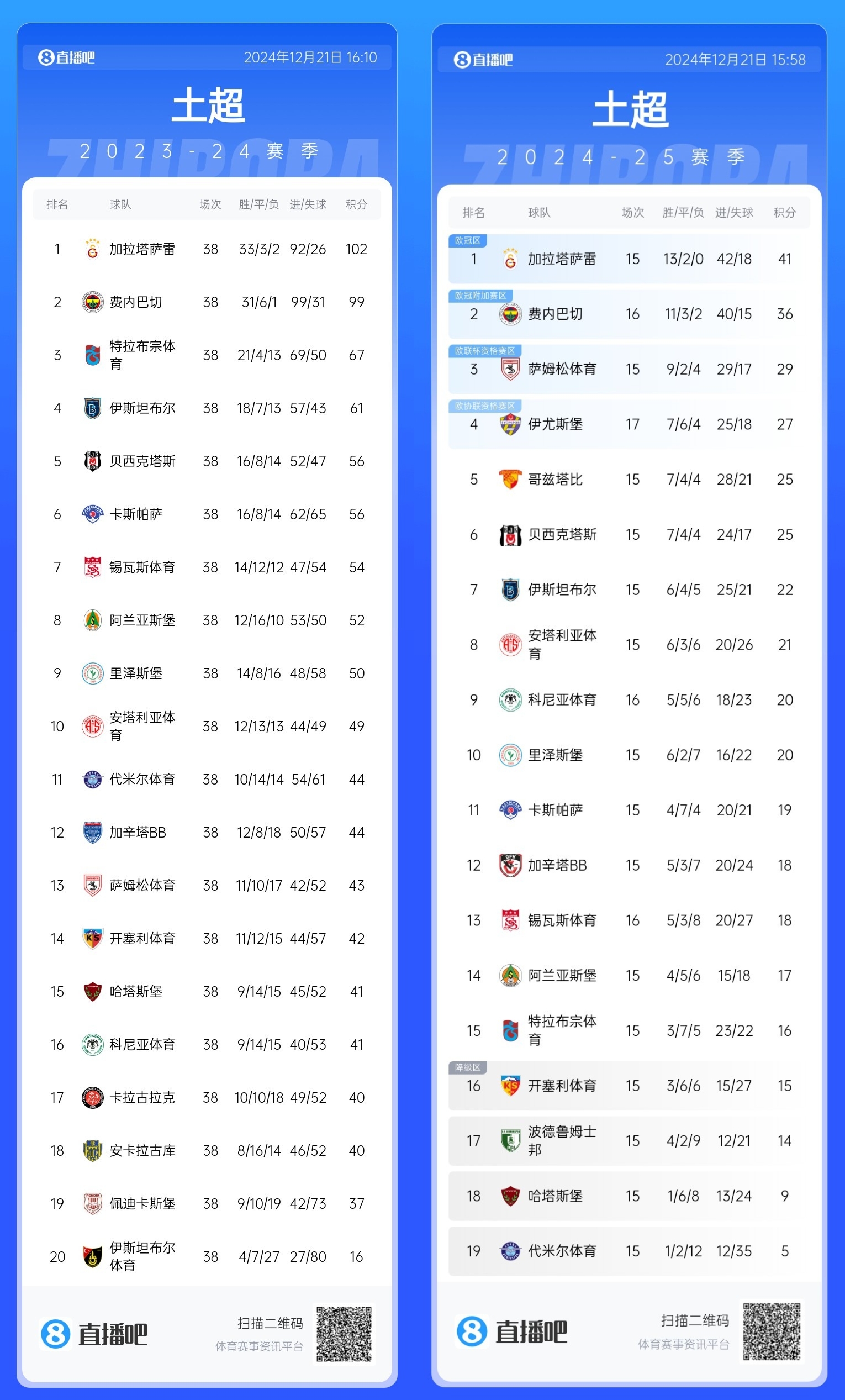 12月21日訊 土耳其媒體sporx對比了上賽季同期數(shù)據(jù),結果顯示費內巴切比上賽季同期少拿了7個積分。