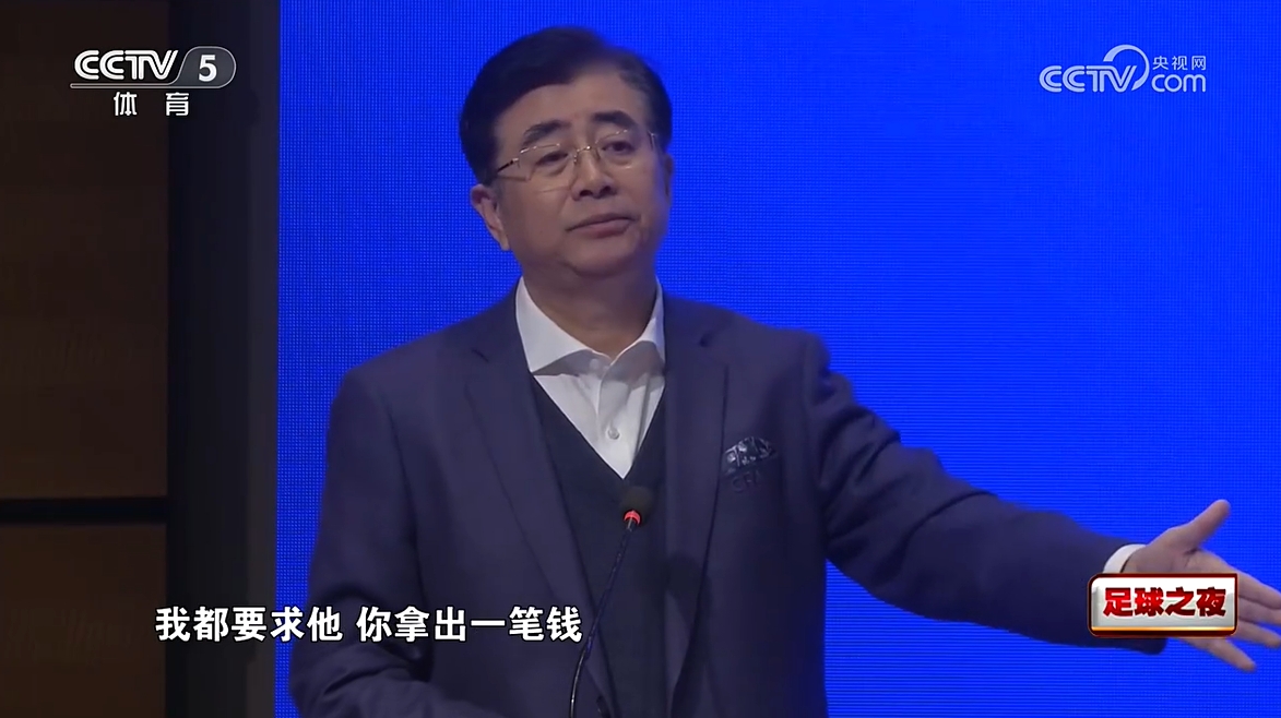 我現(xiàn)在談贊助商時(shí)就是列出一些需求,凡是贊助中國足球的,我都要求他拿出一筆錢。