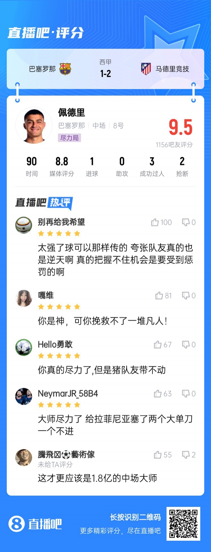 巴薩遭馬競絕殺,佩德里貢獻(xiàn)“大師級”表現(xiàn),但他的多次精彩傳球策動(dòng),被隊(duì)友拉菲尼亞、萊萬浪費(fèi)。