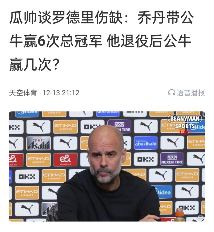 羅德里受傷被認(rèn)為是曼城崩盤(pán)的重要原因,瓜迪奧拉甚至用喬丹退役后的公牛來(lái)類(lèi)比缺了羅德里的曼城。但曼城似乎不能把糟糕的戰(zhàn)績(jī)只歸咎于此。