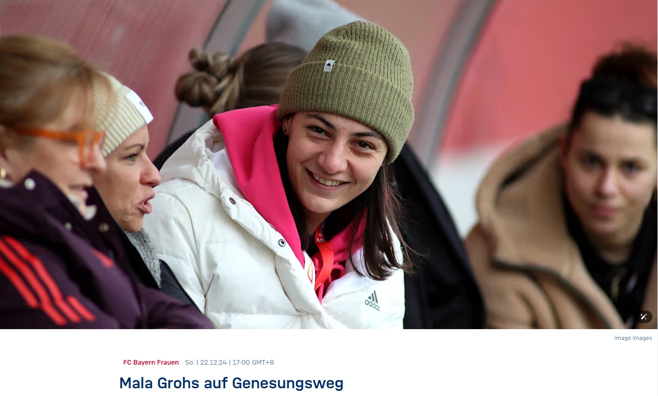 在11月中旬,拜仁發(fā)布公告女足門將馬拉-格羅斯被診斷出惡性腫瘤,當(dāng)時(shí)拜仁與她續(xù)約到了2026年。