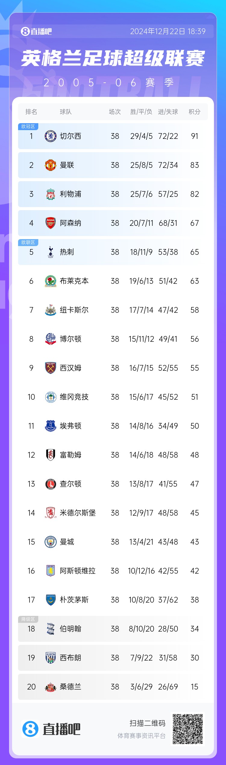 最終曼城以13勝4平21負(fù)積43分排名第15的成績結(jié)束了05/06賽季。