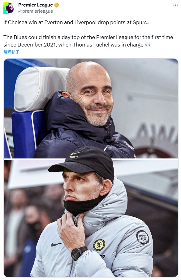 英超官方展望:“如果切爾西贏埃弗頓,而利物浦在熱刺身上丟分...那么切爾西將自2021年12月以來,首次在一個完整的比賽日結(jié)束后位居英超榜首,當時切爾西的主帥還是圖赫爾?!?/p>