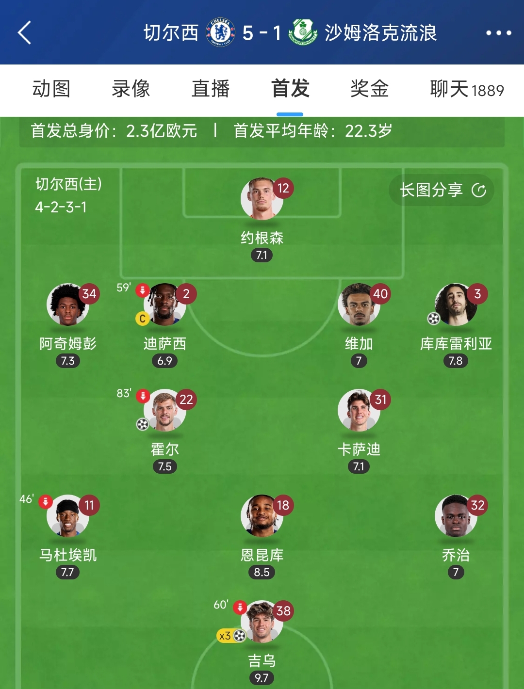12月20日切爾西5-1沙姆洛克流浪首發(fā)