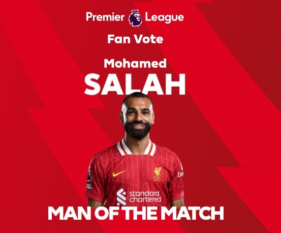 英超官方宣布,薩拉赫在賽后被球迷票選為本場比賽的最佳球員。