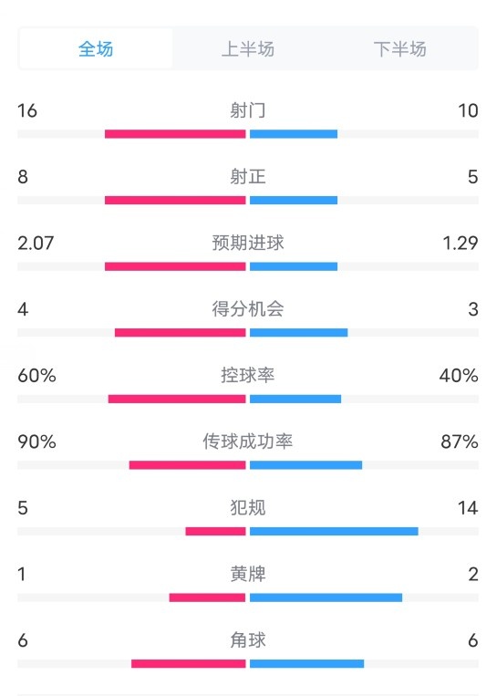 全場(chǎng)比賽數(shù)據(jù)如下(皇馬在前):