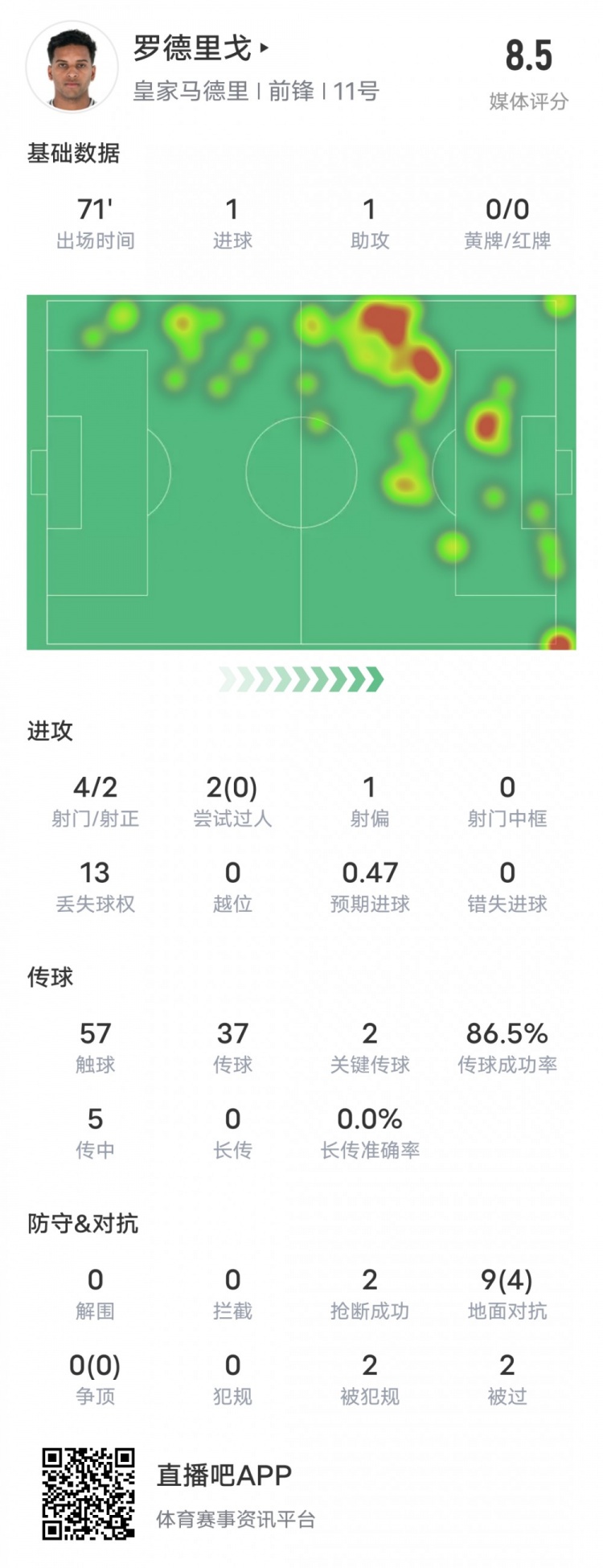 羅德里戈本場比賽具體數(shù)據(jù):