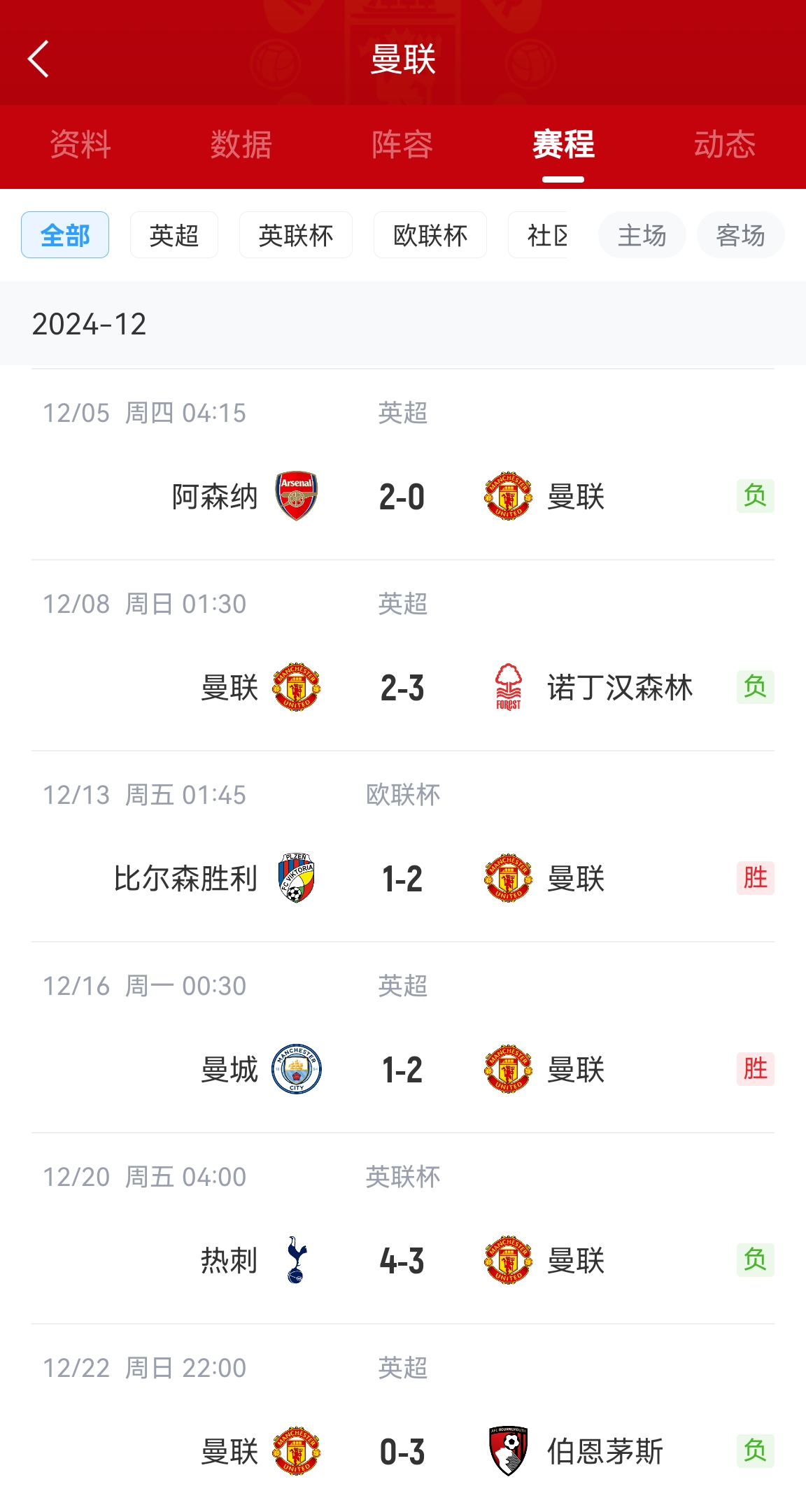 12月23日訊 12月1日主場4-0大勝埃弗頓之后,曼聯(lián)6場6場比賽全部是先丟球0-1落后,其中對陣比爾森勝利和曼城的比賽完成了逆轉(zhuǎn),其他比賽全部告負(fù)。