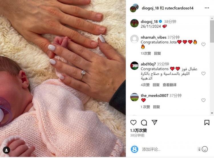 而在今天,若塔和妻子魯特-卡多索更新社媒動(dòng)態(tài),宣布第三個(gè)孩子于11月26日出生。