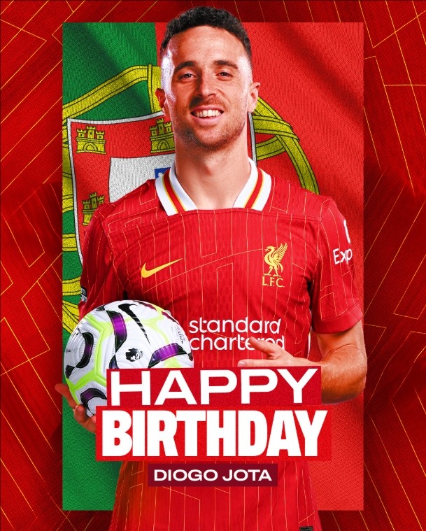 12月4日訊 利物浦官方社媒曬海報(bào),為隊(duì)內(nèi)前鋒若塔慶祝生日。
