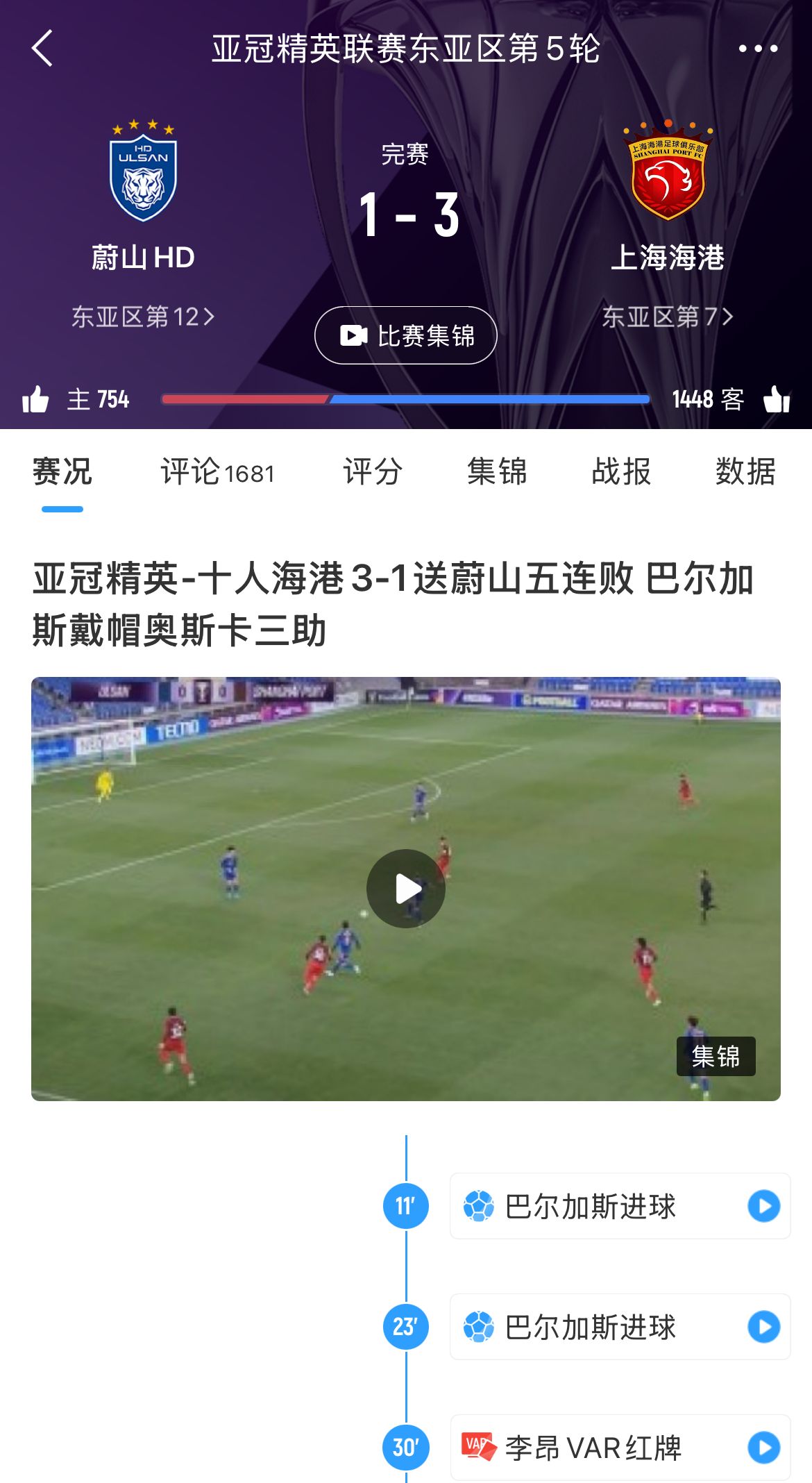 本場(chǎng)比賽之前,蔚山在亞冠東亞區(qū)積分榜上墊底,5輪全負(fù)積0分,唯一的進(jìn)球是在對(duì)陣海港的比賽中打進(jìn)的。