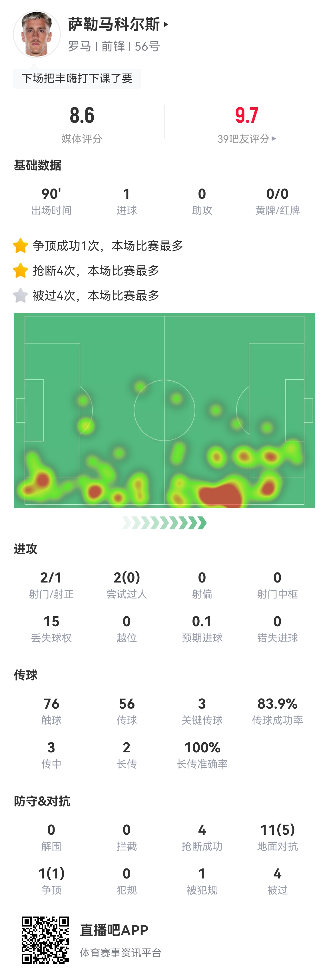 薩勒馬科爾斯獨(dú)造三球,羅馬5-0橫掃帕爾馬。