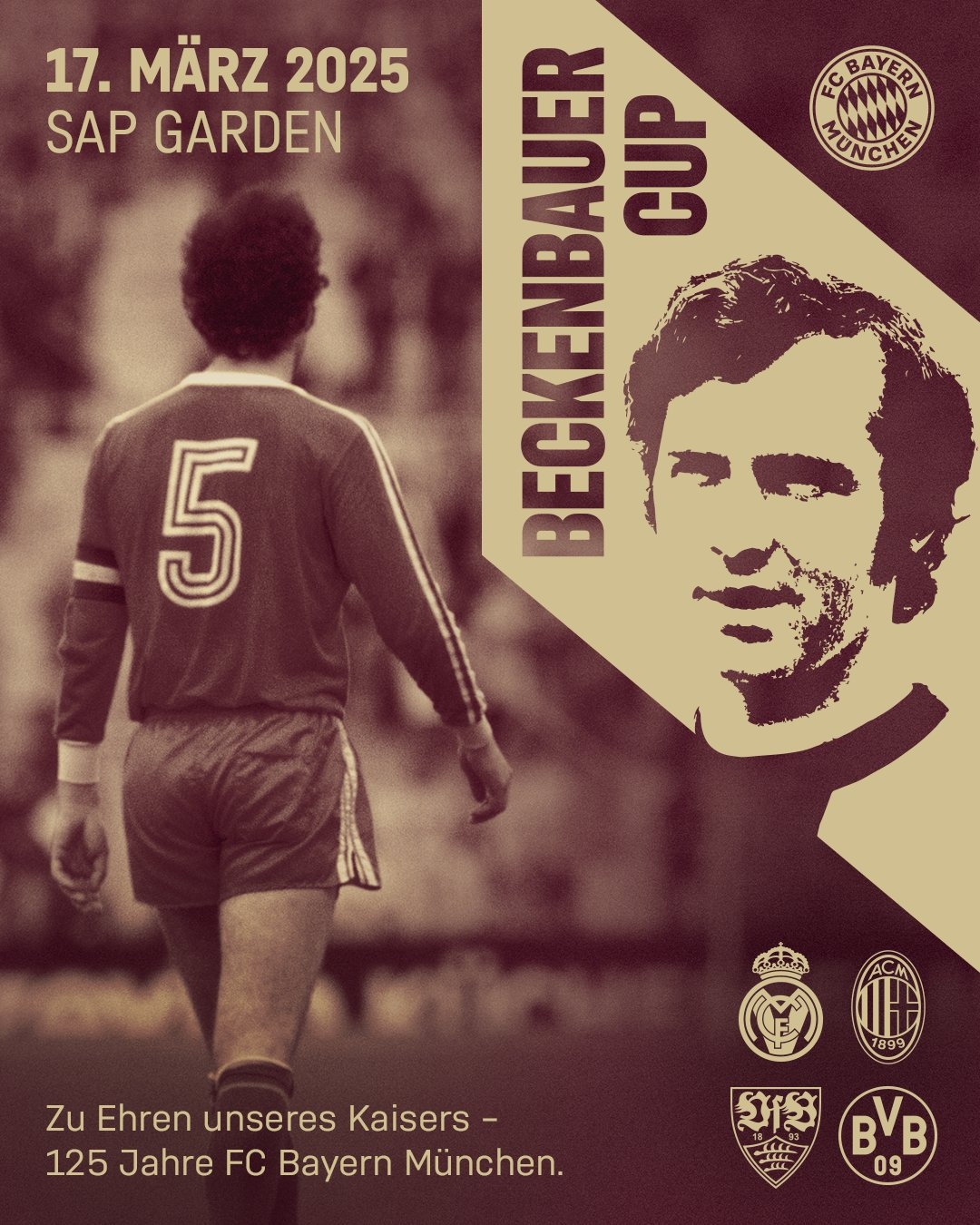 作為紀(jì)念俱樂部成立125周年的活動,拜仁將于2025年3月17日舉辦“貝肯鮑爾”杯傳奇賽,所得款項(xiàng)將捐給貝肯鮑爾基金會。