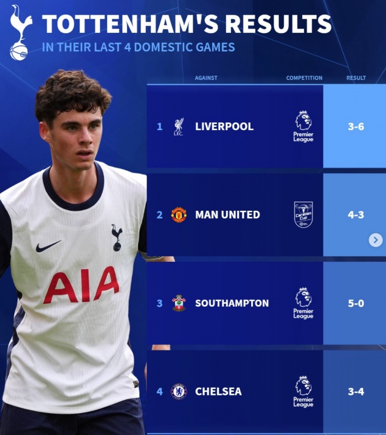 值得一提的是,熱刺的最近4場(chǎng)國(guó)內(nèi)比賽共計(jì)產(chǎn)生28球: