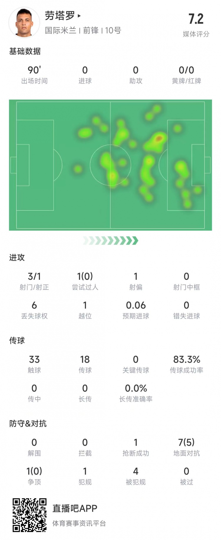 勞塔羅本場(chǎng)比賽數(shù)據(jù):