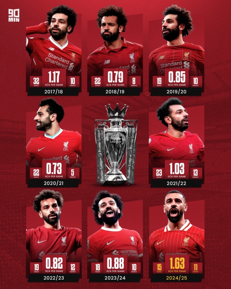 除特別注明外,本站所有內(nèi)容均為24直播網(wǎng)整理排版,轉(zhuǎn)載請注明出處:薩拉赫本賽季英超場均參與1.63球,加盟利物浦以來最多