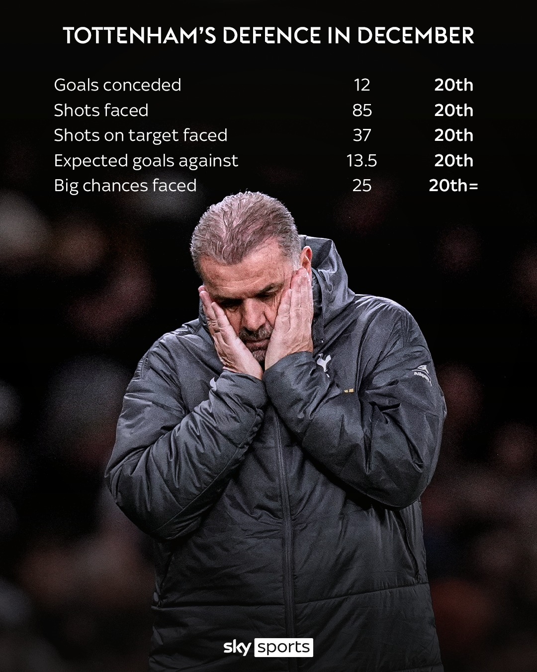 但熱刺的防守并不令人放心,12月以來(lái)他們多項(xiàng)防守?cái)?shù)據(jù)在英超聯(lián)賽墊底。