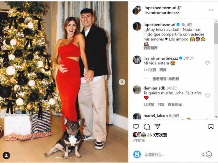 利桑德羅與懷孕的女友穆里-洛佩茲曬出合照,穆里-洛佩茲寫道:“圣誕快樂!沒有比與你共度節(jié)日更好的事情了,我的愛人,我愛你。”