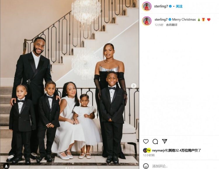 發(fā)布時間:2024年12月25日 18:01點擊:欄目:足球新聞 12月25日訊 阿森納前鋒斯特林更新社媒,曬出了一家七口的合照,并表示道:圣誕快樂 除特別注明外,本站所有內(nèi)容均為24直播網(wǎng)整理排版,轉(zhuǎn)載請注明出處:圣誕快樂!斯特林社媒曬出一家七口的合照 本文標(biāo)簽: 足球 英超 阿森納