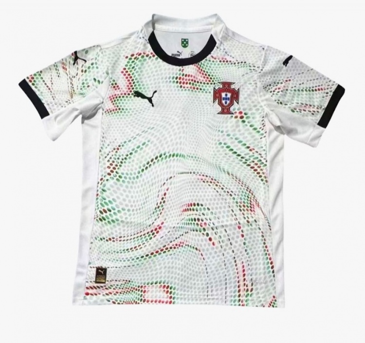 從2025年開始,彪馬取代耐克成為葡萄牙國家隊球衣贊助商,葡萄牙隊明年的客場球衣以白色為主體,搭配有白綠紅圓點設(shè)計,袖口和領(lǐng)口為黑白兩色。