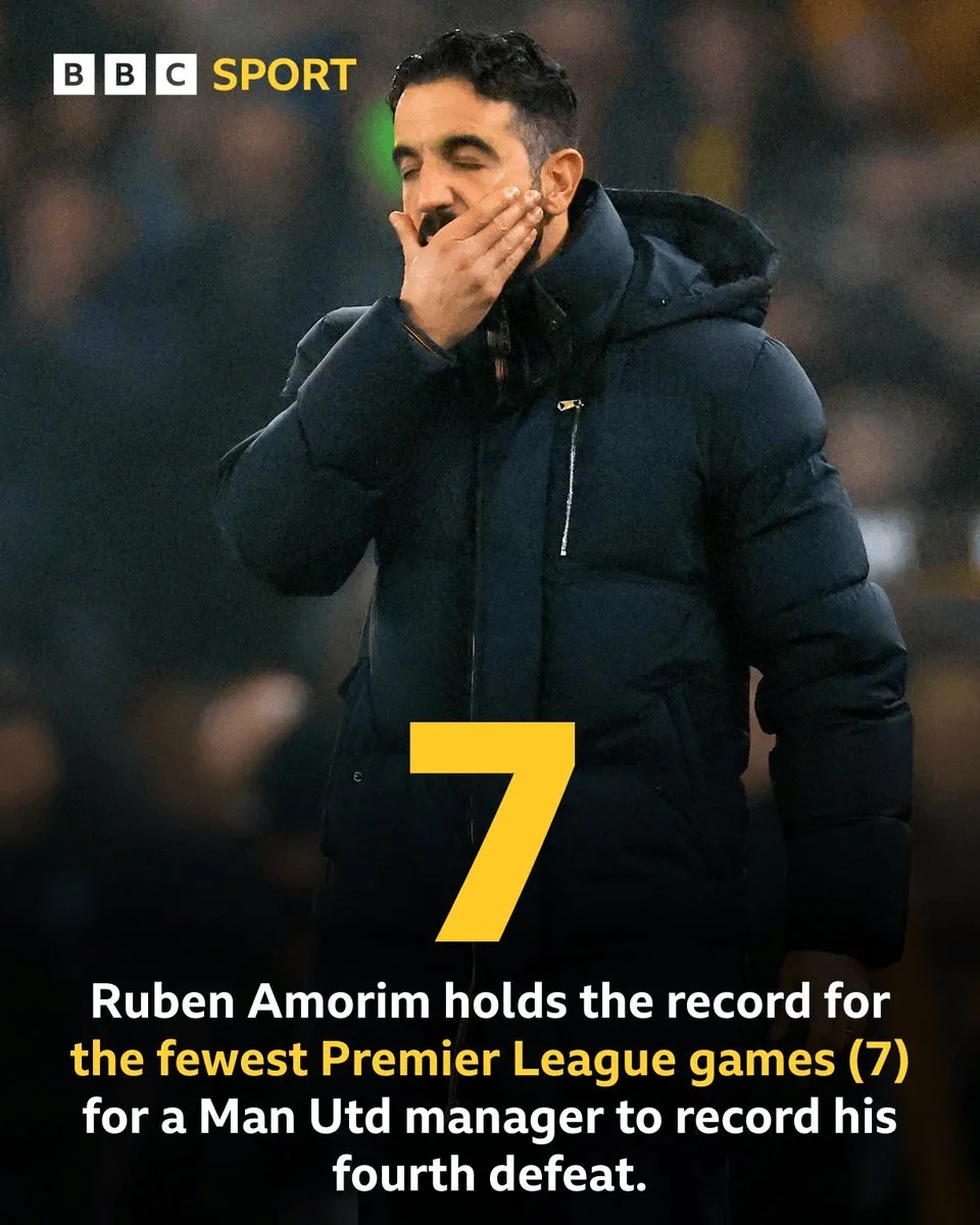 數(shù)據(jù)統(tǒng)計(jì)顯示,這也是阿莫林執(zhí)教曼聯(lián)后的第4場(chǎng)英超失利,他僅用了7場(chǎng)聯(lián)賽便達(dá)成這一尷尬紀(jì)錄,也刷新了曼聯(lián)隊(duì)史主帥最快英超4負(fù)紀(jì)錄。