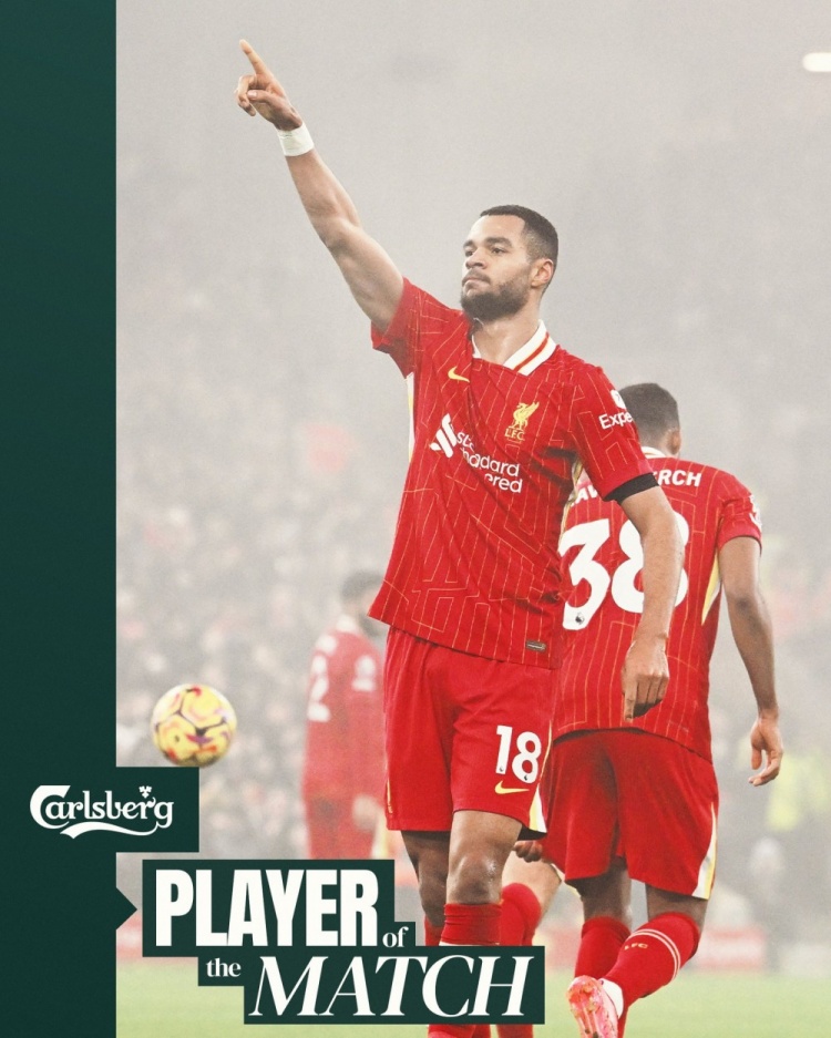 利物浦官方社媒曬出海報,宣布加克波當選本場比賽利物浦隊內最佳球員。