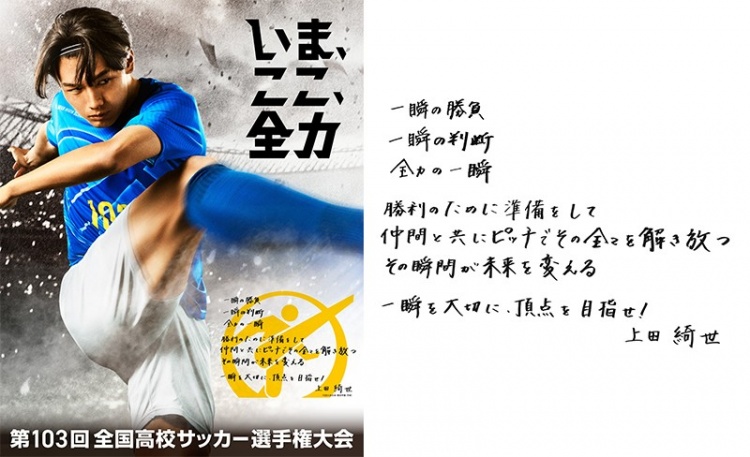 上田綺世為本屆高中足球錦標(biāo)賽寄語道:“就在一瞬間,勝負(fù)就可揭曉;就在一瞬間,做出臨場判斷;每一個(gè)瞬間都要全力以赴。為了取勝,以策萬全,與隊(duì)友在賽場上釋放全力,也許就在一瞬間,你的未來會因此改變。重視每一個(gè)瞬間,朝著榮譽(yù)之巔,進(jìn)發(fā)!”