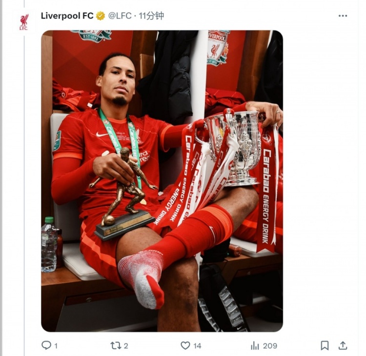 2017年12月27日,利物浦宣布簽下南安普頓中衛(wèi)范迪克,球員1月正式加盟,轉(zhuǎn)會(huì)費(fèi)8465萬(wàn)歐元(德轉(zhuǎn)信息)。利物浦官方更新社媒動(dòng)態(tài),曬出范迪克效力球隊(duì)以來(lái)的多張照片。