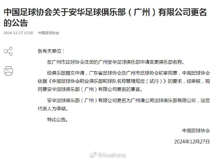 除特別注明外,本站所有內(nèi)容均為24直播網(wǎng)整理排版,轉(zhuǎn)載請(qǐng)注明出處:新賽季第一例更名公示,中乙新軍廣州安華更名廣州蒲公英