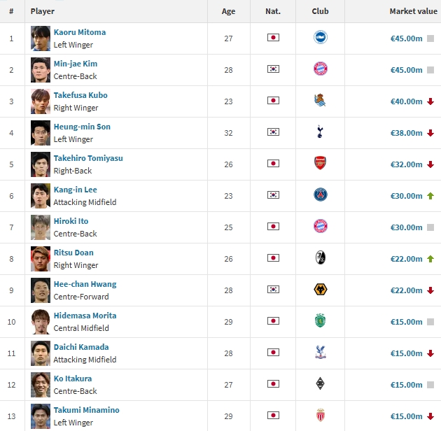 除特別注明外,本站所有內(nèi)容均為24直播網(wǎng)整理排版,轉(zhuǎn)載請(qǐng)注明出處:孫興慜第4!久保建英身價(jià)跌至4000萬(wàn),三笘薰&金玟哉晉升亞洲一哥