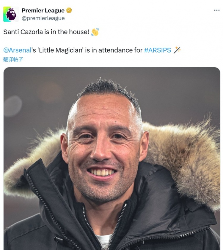 12月28日訊 阿森納在本輪英超主場迎戰(zhàn)伊鎮(zhèn),前槍手球員卡索拉被發(fā)現(xiàn)來到現(xiàn)場觀戰(zhàn)。