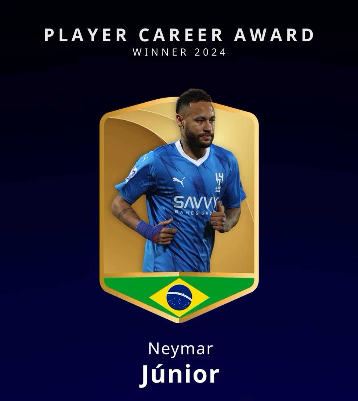 12月28日訊 官方消息,內(nèi)馬爾獲得2024環(huán)足獎球員生涯獎。