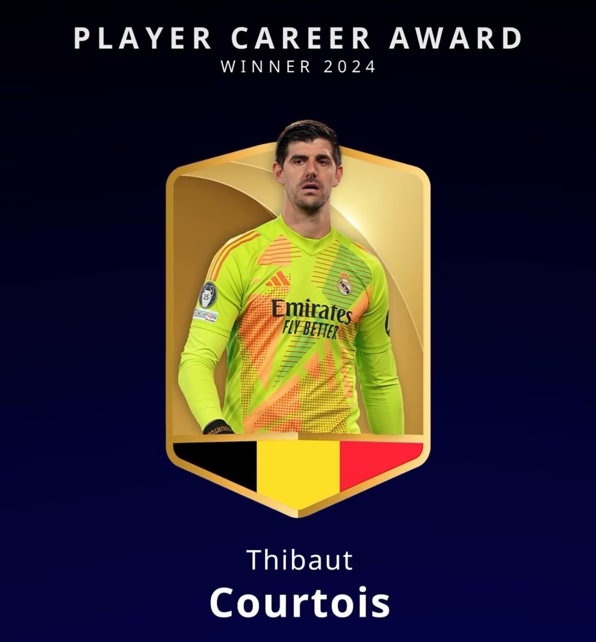 12月28日訊 官方消息,庫爾圖瓦獲得2024環(huán)足獎球員生涯獎。